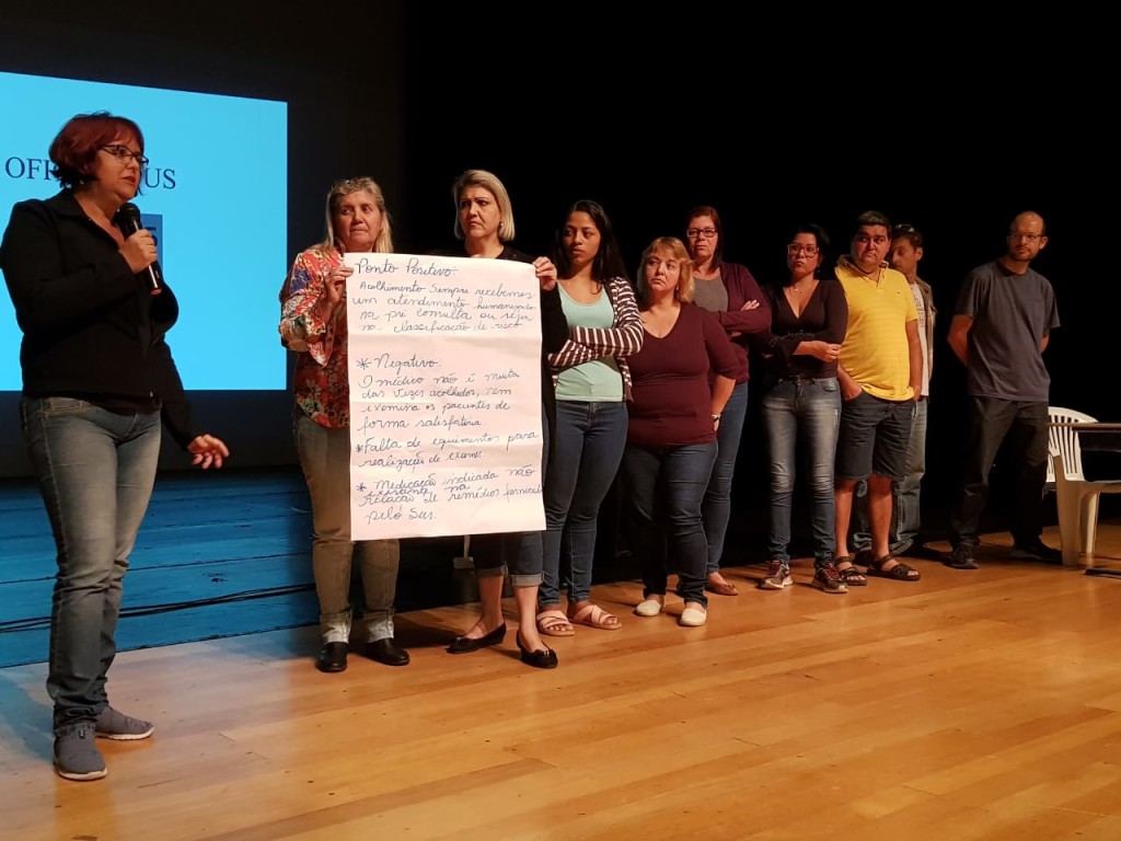 Na parte da manhã, as palestras abordaram a origem do SUS e as diferentes responsabilidades em cada nível de funcionamento (municipal, estadual e federal). À tarde, foram organizados grupos de trabalho que discutiram cinco entre os 12 princípios do SUS: equidade, universalidade, integralidade, descentralização e controle social. Esse debate foi feito a partir do video “Os princípios do SUS”, disponível online em https://youtu.be/PzVxQkNyqLs.