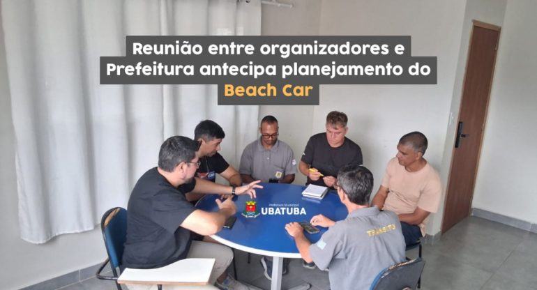 A realização do Beach Car 2026, prevista para os dias 12 e 13 de setembro, em Ubatuba, já começou a ser planejada com antecedência. Um encontro preliminar reuniu representantes da organização do evento, da Secretaria de Segurança Pública e da Diretoria de Trânsito com o objetivo de alinhar medidas de organização, segurança e circulação viária para os dois dias de programação. A data do evento aparece na agenda oficial do município e também na divulgação da organização.