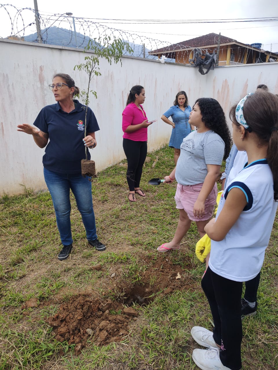 Para finalizar a ação, em parceria com a Secretaria Municipal de Meio Ambiente, o grupo realizou um plantio simbólico de quatro mudas nativas no interior da CEI.