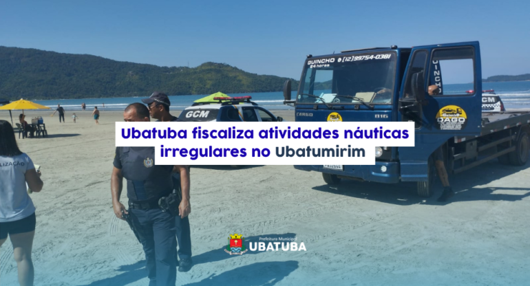 No último domingo, 26, o setor de fiscalização de comércio da Secretaria de Fazenda realizou uma ação na praia do Ubatumirim para coibir atividades irregulares voltadas ao turismo náutico e ao uso da faixa de areia.