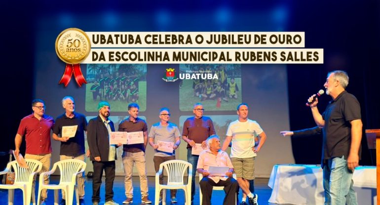 O Teatro Municipal de Ubatuba celebrou o Jubileu de 50 anos da Escolinha Municipal de Futebol Rubens Salles. O evento reconheceu a trajetória iniciada em 1975, que formou atletas e, sobretudo, cidadãos, a partir de valores como disciplina, respeito, pertencimento e inclusão social.