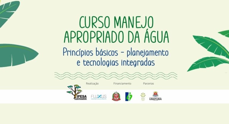 O curso de manejo apropriado da água, com o tema Princípios básicos – planejamento e tecnologias integradas está sendo realizado na Escola Municipal José Belarmino Sobrinho, no bairro Puruba.  A programação teve início em junho e segue até dia 18 de setembro, aos sábados das 8h às 16h, e domingos das 8h às 12h, e apresenta aulas teóricas e práticas que buscam estimular a reflexão sobre os usos da água e promover soluções ecológicas comunitárias.