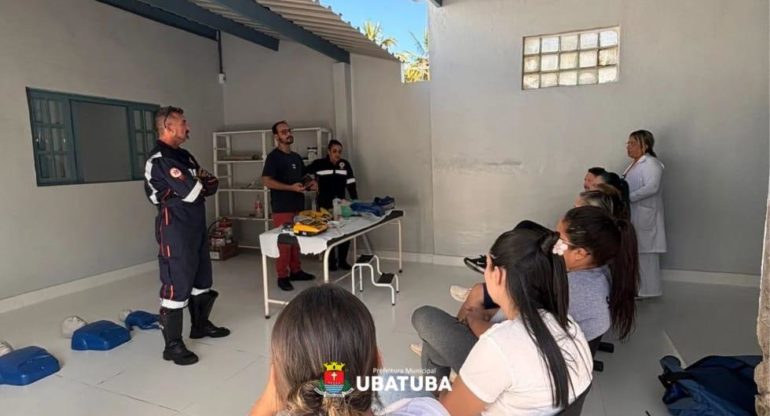 Durante o treinamento, foram abordados procedimentos relacionados à parada cardiorrespiratória (PCR), atendimento a casos de obstrução de vias aéreas por corpo estranho (engasgo) e manejo de convulsões. A capacitação teve como objetivo reforçar a preparação da equipe para situações de urgência no atendimento à população.
