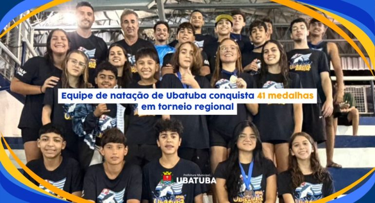A equipe de natação de Ubatuba teve participação de destaque no 3º Torneio Regional da 6ª Região – Petiz a Sênior, realizado no Itaguará Country Club, em Guaratinguetá, e promovido pela Federação Aquática Paulista. Ao longo da competição, a delegação ubatubense conquistou 41 medalhas, sendo 21 de ouro, 10 de prata e 10 de bronze, em mais uma atuação expressiva do município no cenário regional.